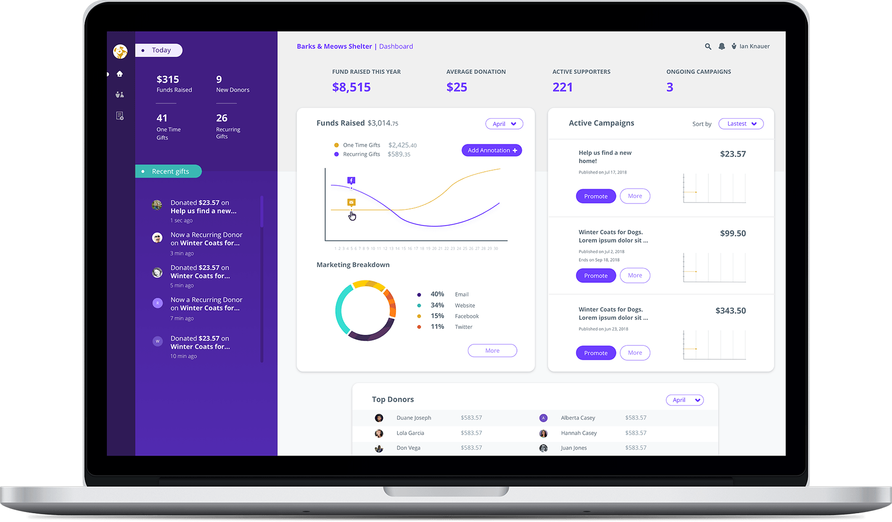 Get a clear understanding of how and why your campaigns are performing. Your dashboard is a quick snapshot of your total Funds raised and where the support is coming from.