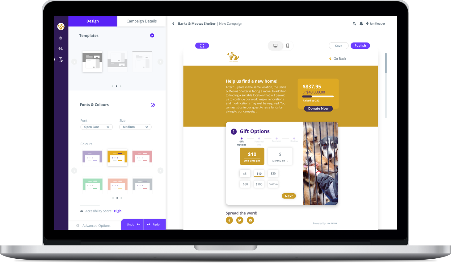 "No more countless hours trying to set up a donation form that looks like our website!"